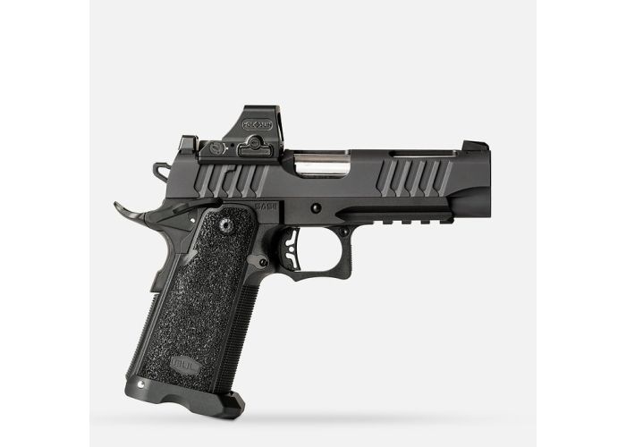 Le SAS II EDC Pro est un pistolet polyvalent doté d'une carcasse en aluminium, avec un canon compensé de 4.25 pouces.