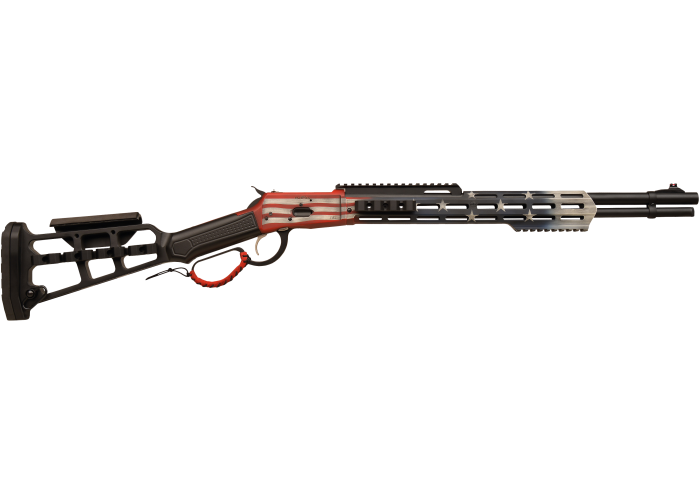 La carabine SXB de Hugtek est une arme à levier sous garde, tactique et polyvalente, avec une crosse en aluminium, un boîtier noir, un garde-main M-LOK en aluminium et des porte-cartouches, idéale pour le tir sportif en stand avec une déco US.