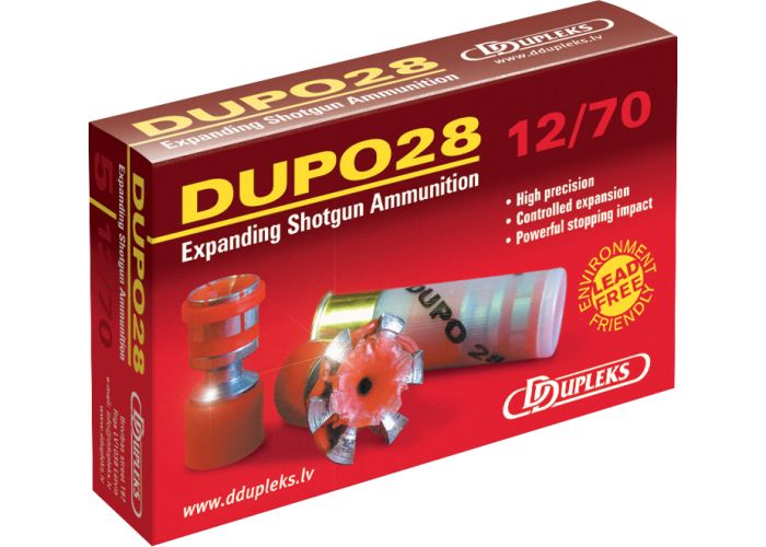 Faites face à de nouvelles aventures de chasse avec la cartouche à balle DDupleks Dupo 28 C/12/70 - Boite de 5, une munition spécialement adaptée pour les fusils de calibre 12.