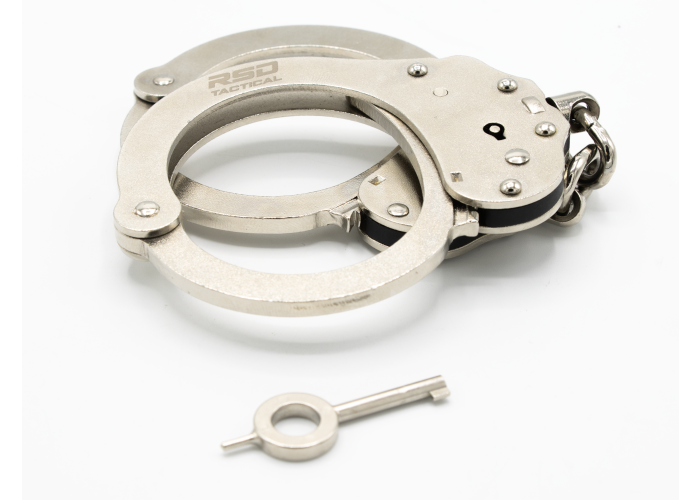 Menottes rondes type US avec une ouverture sur les deux faces de la menotte et une double sécurité à activer avec la clé.